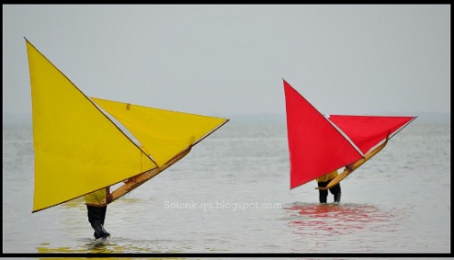 Pada jaman dahulu bahan untuk membuatnya berasal dari nipah, untuk layarnya dari daun pisang.
